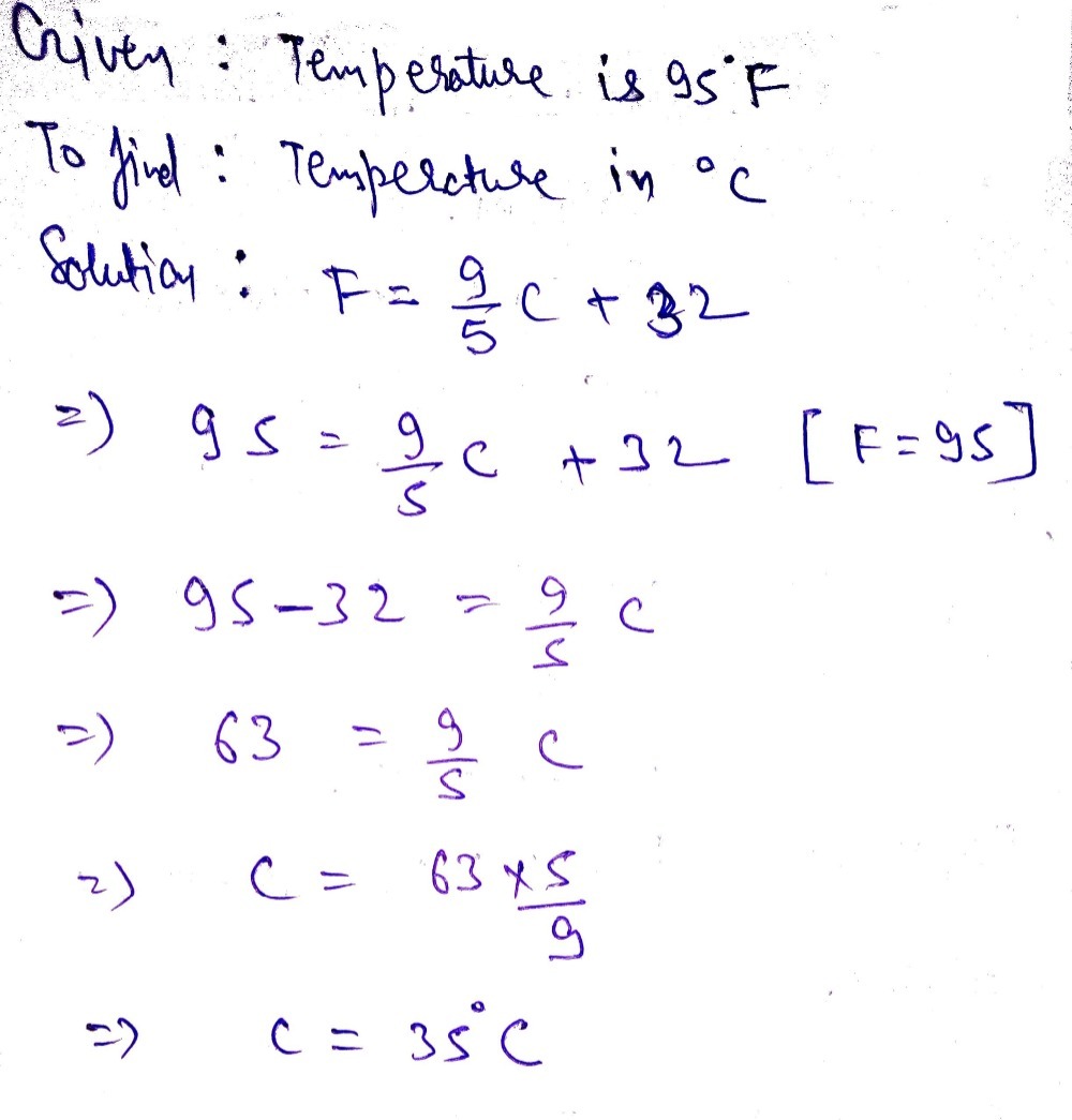 95 degree fahrenheit = 35 celsius Maybe you would like to learn more about one of these?
